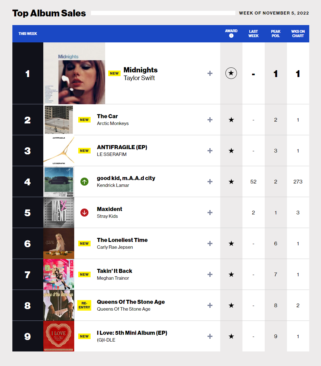 5日(現地時間)ビルボードによれば(G)I-DLEのミニ5集「I love」が「トップアルバムセールス」(Top Album Sales)チャートに9位で初進入した。