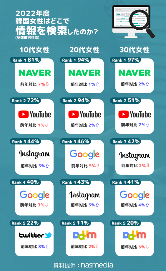 2022年度韓国女性はどこで情報を検索したのか?