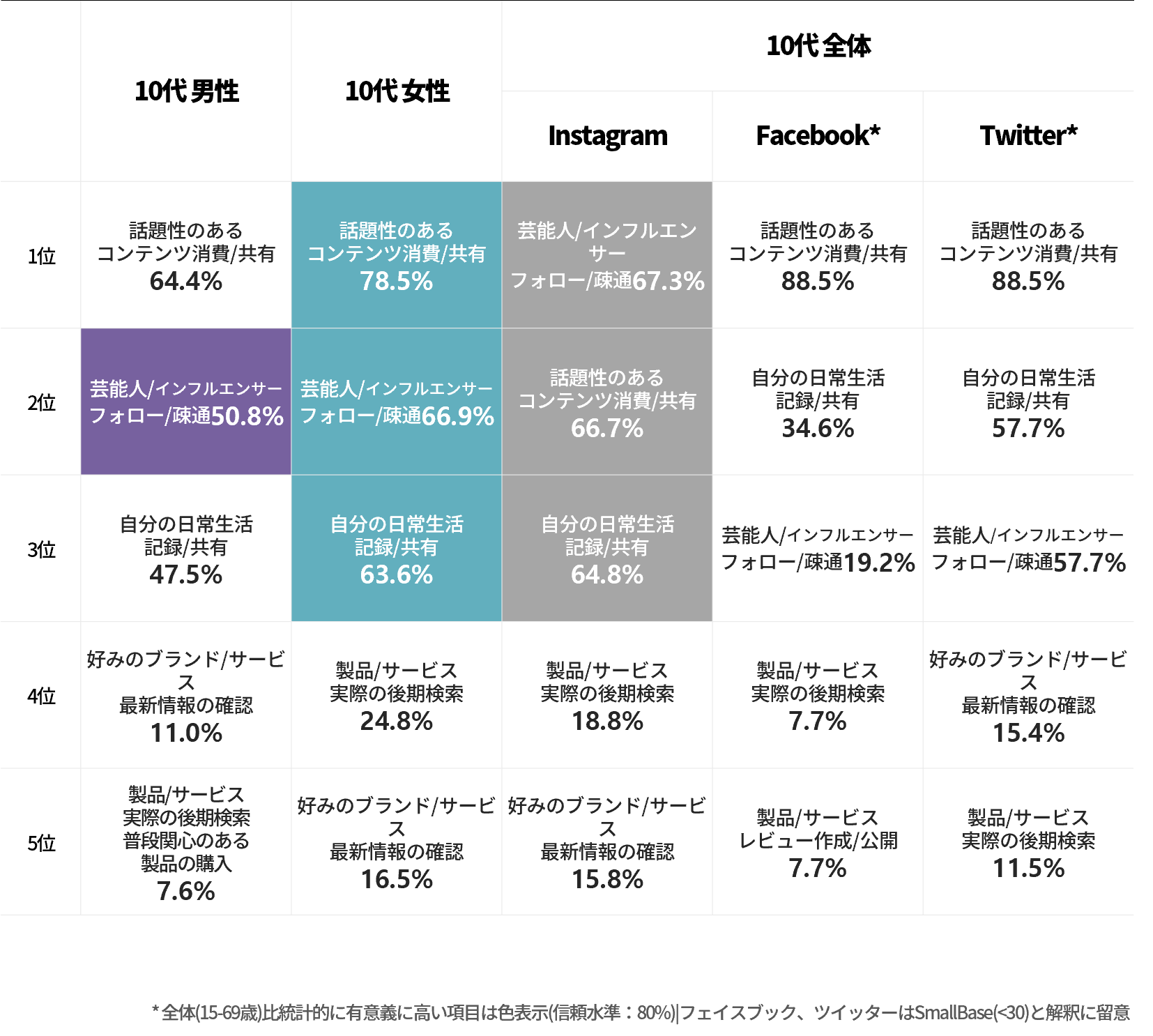 10代は話題性のあるコンテンツを消費し、インフルエンサー コンテンツを確認するためにSNSを利用する。