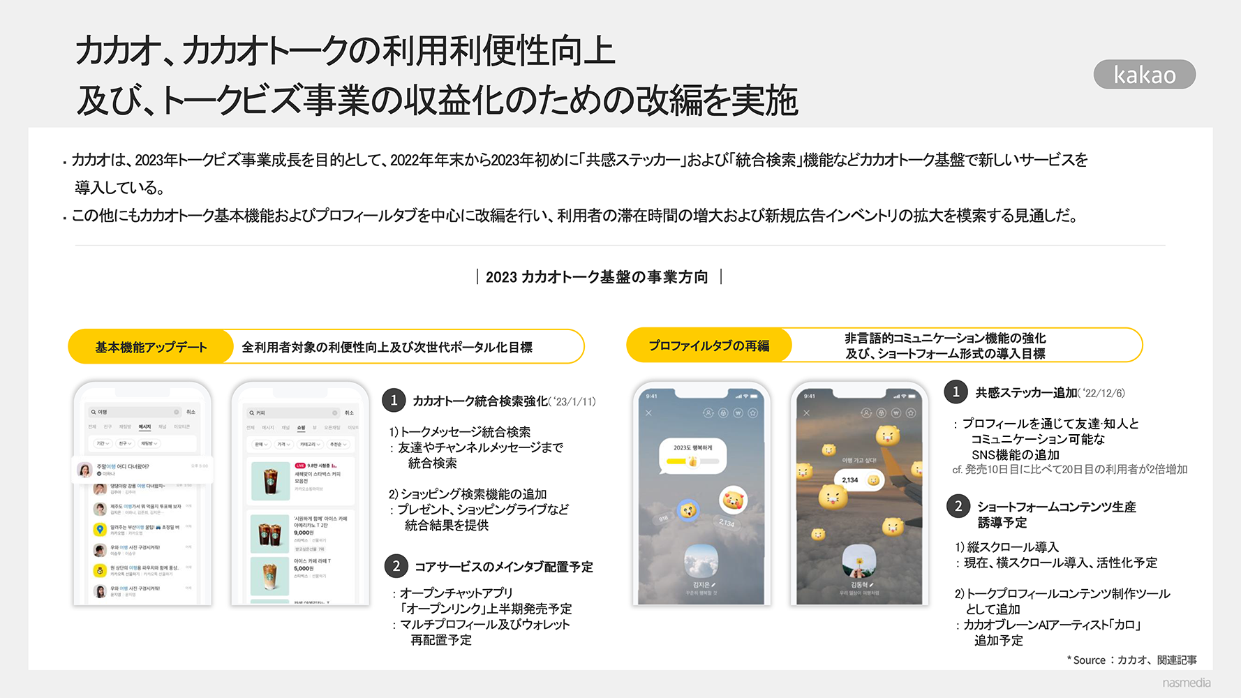 [nasmedia] カカオ、カカオトークの利用利便性向上及び、トークビズ事業の収益化のための改編を実施