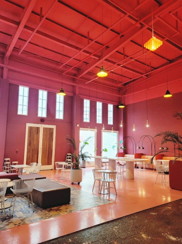 内部のインテリアデザインも魅力的で、レンガの壁に露出している配管はビンテージな雰囲気を演出し、天井のあちこちに設置された照明は居心地の良いムードを醸し出しています。