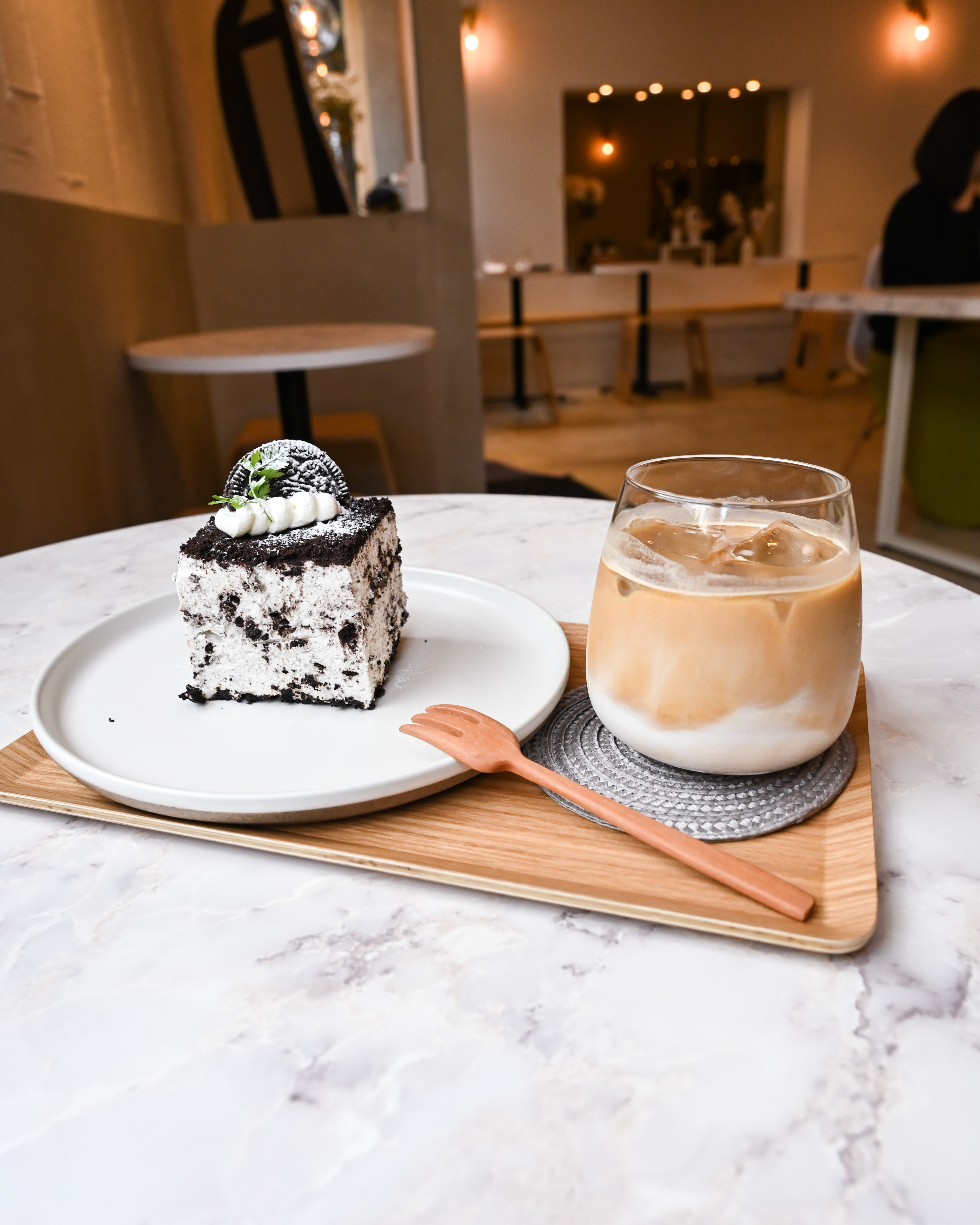 なので今回、飲み物をカフェラテ、そしてスイーツは人気のオレオケーキを注文!