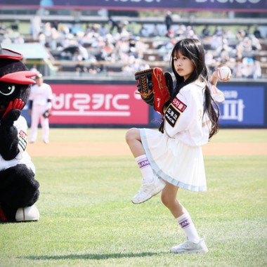 ザ・グローリーのイェソル、kt wizパークで選手たちと始球式に挑戦