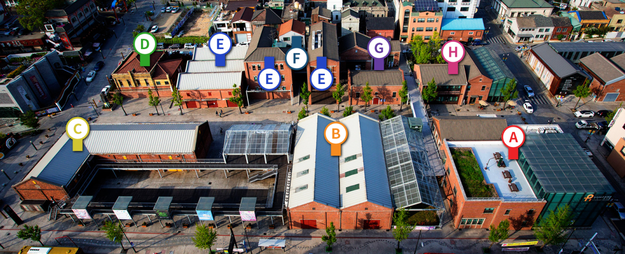 ここは1930~40年代に建てられた日本郵船株式会社(登録文化財第248号)をはじめとする近代建築物6棟をリモデリングして造成された複合文化芸術空間だ。 計8棟で構成されており、それぞれ異なるテーマで飾られ、現在、5棟が使われている。残りの3棟はそれぞれアーカイブ館と教育館として活用されている。 まず、A棟では様々な企画展示が開催される。 B棟はレジデンシープログラム運営機関として入居作家たちの作業室兼宿舎として利用されている。 C棟は多目的ホールとカフェテリアで構成されているが、各種会議やセミナーまたは講演場として使われる。 D棟は作家スタジオであり市民体験プログラム室として使われている。 E棟はゲストハウスとして運営され、F棟はコミュニティラウンジとして訪問客案内センターの機能を担当している。 G棟は事務室と工房で構成されている。